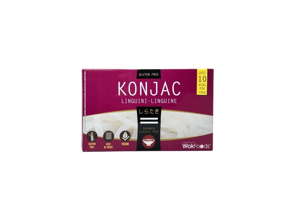 A WOK FOODS Shirataki Konjac Linguini 350 g alacsony kalóriatartalmú, konjac gyökérből (glükomannán) készült tészta, amely szinte teljesen szénhidrát-, cukor- és zsírmentes. Ideális választás keto, low-carb, paleo és gluténmentes étrendhez.